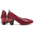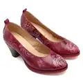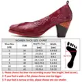 Best Chance of Socofy Vintage Flower Embossed Pumps Women Red Genuine Leather Shoes Woman Block High Heel Pumps Wo