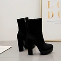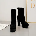 Best Price for NIUFUNI 2019 Women Ankle Boots Autumn Round Toe Platform Boots Fashion Black Suede High Heel Shoes