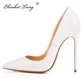 ElisabetTang White Shoes Woman Heel Red High Heels Black Pumps Silver Patent Leather Wedding Stilettos Pumps Sexy Women Shoes