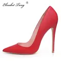 ElisabetTang 2019 Black Red Heel Shoes Women High Heels Faux Suede Stiletto Sexy Heels Pumps Pointed Toe Wedding Shoes For Woman