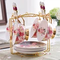 British Pastoral Bone China Tea Cup Saucer Spoon Holder Set Romantic Lover Ceramic Coffee Cup Europe Valentine Porcelain Teacup